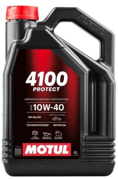 Motorolaj Motul 4100 Protect 10W-40 4L Ezt a Technosynthese® motorolajat kifejezetten a nagy hengerűrtartalmú, dízel- és benzinmotoros, szívó- vagy turbófeltöltős, közvetlen vagy közvetett befecskendező rendszerrel felszerelt modern autókhoz tervezték. A Motul 10W40 nagy teljesítményt és védelmet nyújt a kopás ellen minden működési körülmény között. Főbb jellemzők: T