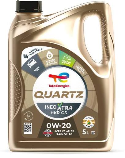 A TOTAL QUARTZ INEO XTRA HKR C5 0W-20 egy kiváló teljesítményű, fejlett szintetikus motorolaj, amelyet a prémium autógyártók legújabb generációs dízelmotorjaihoz terveztek. A TOTAL QUARTZ INEO XTRA HKR C5 0W-20 megfelel a legújabb API SP és ILSAC GF6 szabványoknak, védelmet nyújtva az LSPI (Low Speed Pre-gnition-kopogásos égés) ellen. A TOTAL QUARTZ INEO XTRA HKR C5 0W-20 inno