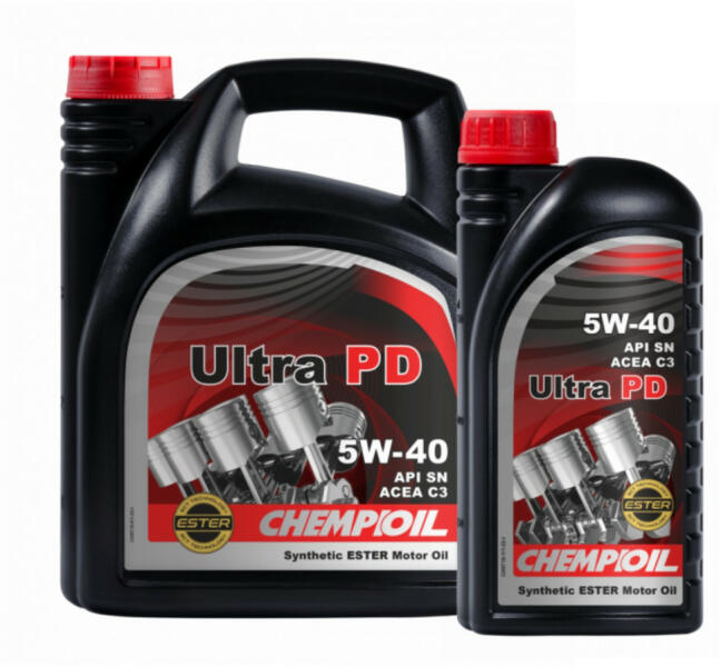 A CSOMAG TARTALMA: CHEMPIOIL ULTRA PD 5W-40 1db 5Literes és 1db 1Literes termék Specifikációk: API SN/CH-4 ACEA C2, ACEA C3 BMW Longlife-04 / BMW LL-04 Opel GM dexos2 MB 229.51 és MB 229.31 VOLKSWAGEN 505.01 CHRYSLER MS-11106 RENAULT RN17 RENAULT RN0700 és RENAULT RN0710 FIAT 9.55535-S2 és FIAT 9.55535-GH2 FORD WSS-M2C917-A Chempioil 9719 Ultra PD 5W-40 észter tartalmú, teljesen szintetik