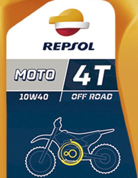 Repsol Moto Off Road 4T 10W-40 Jóváhagyások: API SJ JASO T-903:2006 MA Szintetikus technológiával előállított motorolaj korszerű 4 ütemű terepmotorokhoz. Megfelel az európai és japán gyártók legszigorúbb előírásainak. Elsősorban krossz, és triálmotorokhoz, endurókhoz, quadokhoz ajánlott Korszerű 4 ütemű terepmotorokhoz ajánlott. Nedves és száraz tengelykapcsolós mot