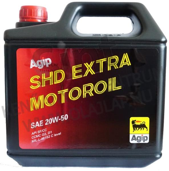 Az Agip SHD Extra 20W50 magas viszkozitási indexű motorolaj 4LAz Agip SHD Extra 20W50 Felhasználható idősebb, keleti és nyugati gyártmányú személy-gépkocsiban, illetve haszonjárműbenAz Agip SHD Extra 20W50 motorolaj Letölthető termékismertető dokumentum itt: Letöltés Felhasználási terület: szélsőséges terhelési viszonyok mellett melegben történő városi üzemmenetben o