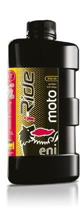 Az eni i-Ride moto 10W-40 szintetikus technológiával készült, nagy teljesítményű, többfokozatú motorolaj, négyütemű motorkerékpár motorokhoz. A termék alkalmazható autópályás és a motorolajat különösen igénybe vevő ún. „stop and go üzemmódban is. Különösen ún. „túramotoros üzemmódban ajánlott az alkalmazása. JELLEMZ Ő PARAMÉTEREK SAE - fokozat 10W-40 Visz