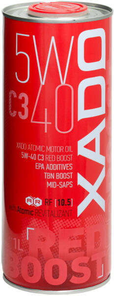 XADO Atomic motorolaj 5W-40 C3 RED BOOST Prémium szintetikus motorolaj, amely növelt mennyiségű REVITALIZANT®-t [RF=10.5] és innovatív RED BOOST adalékot tartalmaz. A XADO Atomic Oil 5W-40 C3 RED BOOST egy kiváló minőségű motorolaj személygépkocsik és könnyű haszongépjárművek dízel- és benzinmotorjaihoz. Katalizátorral, turbófeltöltős motorral, részecske- szűrővel és