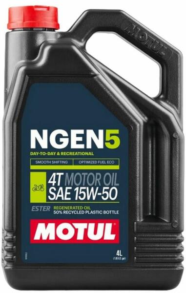 innovatív, a fenntarthatóság jegyében készített motorolaj négyütemű motorkerékpárokhoz A Motul NGen5 4T 10W-50 innovatív, a fenntarthatóság jegyében készített motorolaj négyütemű motorkerékpárokhoz. Szintetikus észterekkel, magas színvonalat képviselő alapolajokkal, nagy teljesítményű adalékanyagokkal és 75%-ban regenerált olajokkal előállított új generációs k