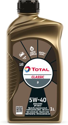A Total Classic 9 5W-40 motorolaj egy prémium minőségű, szintetikus technológiával készült motorolaj, amelyet széles körben alkalmazhatunk benzines és dízel üzemű motorokban egyaránt. Kifejezetten alkalmas minden típusú benzinmotorhoz, beleértve a turbófeltöltéses, többszelepes motorokat, valamint a katalizátorral vagy anélkül működő rendszereket. A dízelmotorok szám