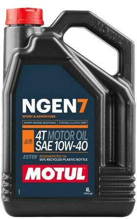 innovatív, a fenntarthatóság jegyében készített, szintetikus bázísú, észterekkel erősített motorolaj négyütemű motorkerékpárokhoz A Motul NGen7 4T 10 W-40 innovatív, a fenntarthatóság jegyében készített motorolaj négyütemű motorkerékpárokhoz. Szintetikus észterekkel, magas színvonalat képviselő alapolajokkal, nagy teljesítményű adalékanyagokkal és 75%-ban regen