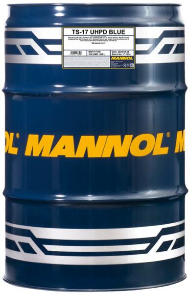 Mannol 7117 TS-17 UHPD Blue Truck Special 5W-30 motorolaj, 208lit Energiatakarékos szintetikus (PAO-alapú) motorolaj a legújabb generációs nagy teljesítményű és nagy sebességű dízelmotorokhoz turbófeltöltéssel és anélkül, nehéz körülmények között alacsony kéntartalmú üzemanyaggal. Kifejezetten arra tervezték, hogy megvédje a gépeket, és a legtöbbet hozza ki abból,