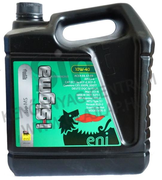 Az ENI I-SIGMA TOP MS 10W-40 modern, szintetikus technológiával készült, alacsony hamutartalmú, nagy teljesítményű, üzemanyag-takarékos, hosszú csereperiódusú, többfokozatú haszongépjármű motorolaj, kifejezetten a legmodernebb - kipufogógáz utókezelő rendszerekkel szerelt - (EURO IV-VI) haszongépjárművek részéreAz ENI I-SIGMA TOP MS 10W-40 szintetikus technológiával k