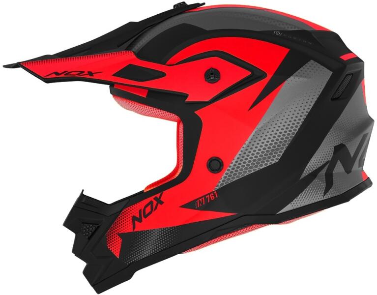 Az N761 egy gyerek motokrossz bukósisak, amely polikarbonát héjjal készült, rendkívül tartós anyagok felhasználásával. Főbb jellemzők és specifikációk: Kialakítása - motokrossz bukósisak Anyaga - polikarbonát héj Rögzítés mikrometrikus csattal Nyakprotektorral való használatra tervezett gallérforma Könnyű, szerszám nélküli siltzőcsere-rendszer Teljesen állítható