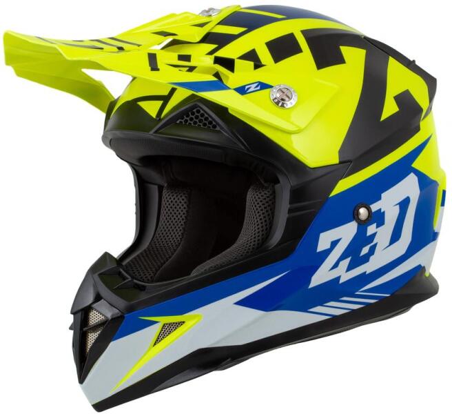 Zed X1.9 Cross Bukósisak (Kék - Sárga - Fekete - Fehér)A Zed X1.9 Cross Bukósisak egy stílusos és praktikus választás minden motoros számára. Kék, sárga, fekete és fehér színekben pompázó dizájnja különösen vonzó, és biztosan hozzáad egy extra réteg stílust a motoros felszereléséhez. Az ABS műanyagból készült külső héj és az EPS belső bélés a lehető legnagy