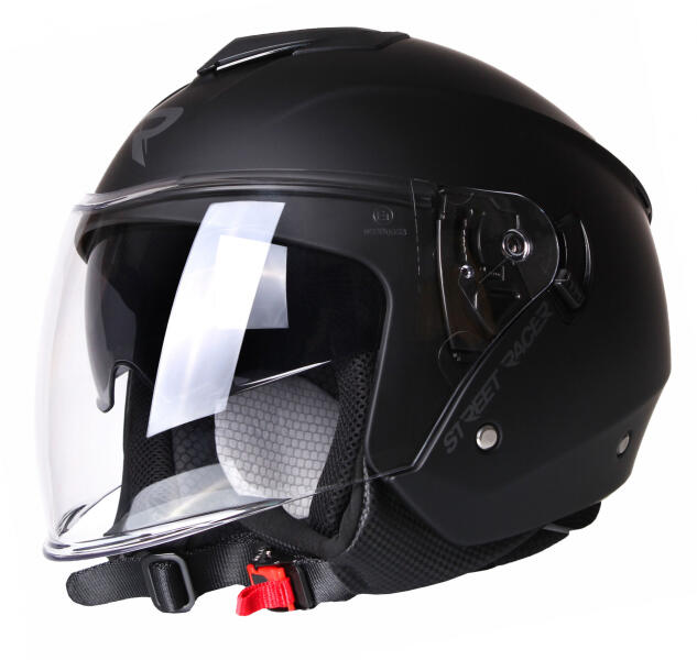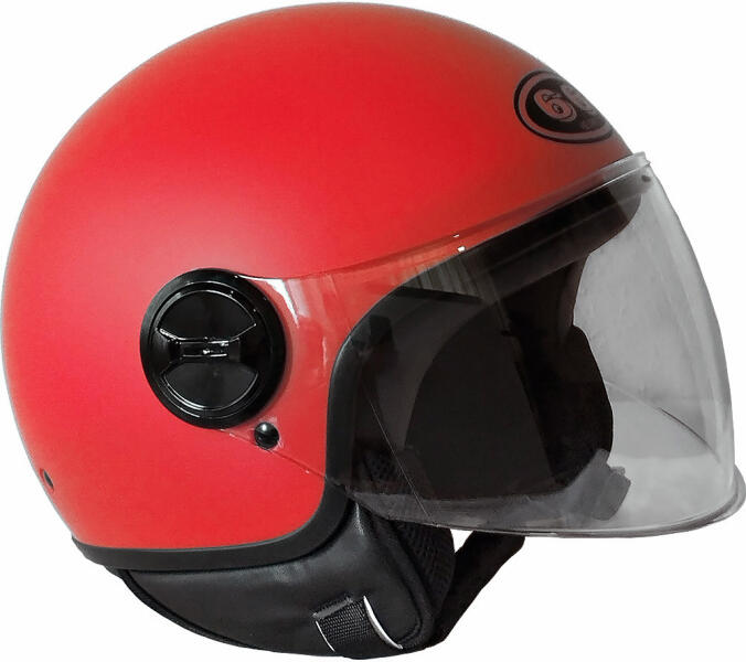 Helmet66 FG131 matt piros nyitott bukósisak. Gyors csattal könnyen állítható, ABS héjszerkezet, feltolható karcálló plexi, bélése könnyen tisztán tartható. CE tanúsítvánnyal rendelkezik. Könnyített, puha fül rész a maximális kényelem érdekében.