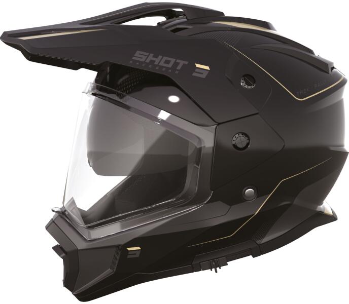 A bukósisak szintetikusan megerősített SRS sisakhéjból készült. EPS erősítés a jobb energiafelvétel érdekében. Kemény poliuretán PU lakkal történő felületkezelés. Teljesen kivehető és mosható hipoallergén szellőző bélés. Szellőztetés az optimális hőszabályozás éredekében. Integrált napszemüveg. Előkészítés a BT Intercom használatához. Mikrometrikus csatt