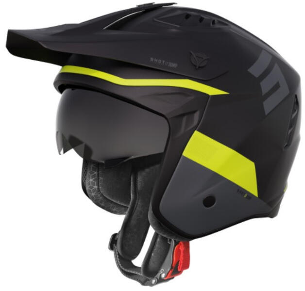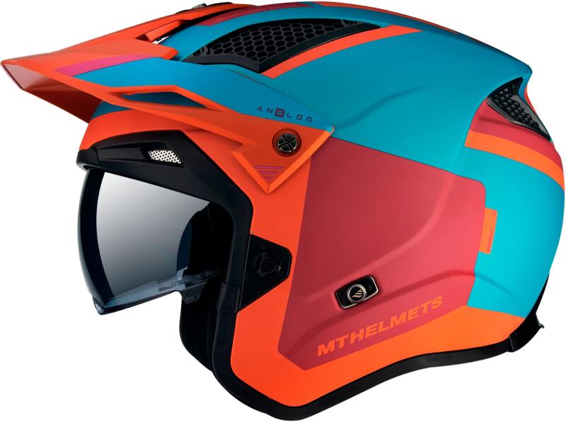 HIRP-ből készült sisakhéj. Teljesen kivehető és mosható bélés antiallergén kezeléssel. Beépített napellenző. Rögzítés mikrocsattal, dupla fogazású rögzítési rendszerrel a maximális biztonság érdekében. Előkészítés bluetooth intercomhoz rendszerhez (nem tartozék). Súly 1200 g (+/- 50 g). ECE 22.06 szabvány. Divatos, nyitott sisak, amelyet nem csak a trialokhoz terve