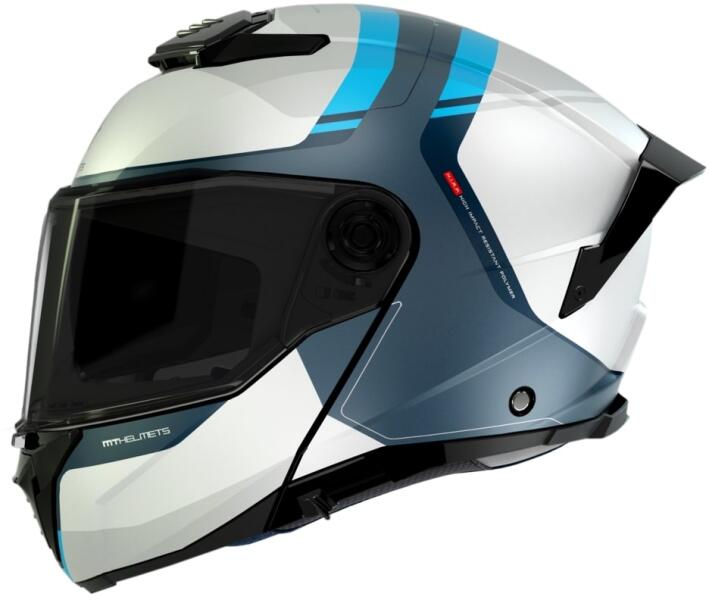 A bukósisak szintetikusan megerősített SRS sisakhéjból készült. EPS erősítés a jobb energiafelvétel érdekében. Kemény poliuretán PU lakkal történő felületkezelés. Teljesen kivehető és mosható hipoallergén szellőző bélés. Szellőztetés az optimális hőszabályozás éredekében. Integrált napszemüveg. Előkészítés a BT Intercom használatához. Mikrometrikus csatt
