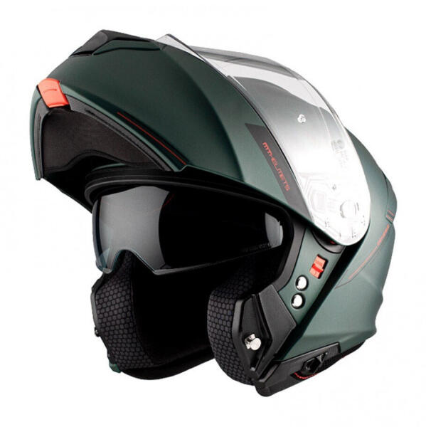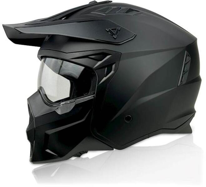 Polikarbonátból készült sisak. Speciális meghosszabbított átlátszó plexivel, szellőzőnyílásokkal a gyors légcsere és a páramentesítés céljából. Karcálló, gyorsan leszerelhető plexivel. Beépített UV filteres napellenzővel. Kiváló szellőzőrendszer a jó légcsere érdekében. Kivehető, mosható, mikroszálas anyagból készült béléssel. A sisak kompatibilis a diopt