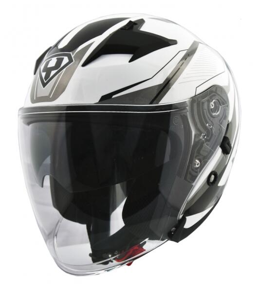 A Yohe 878-1M Graphic bukósisak minőségi, nyitott bukósisak, nagy plexivel, praktikus napellenzővel és egyedi grafikával. A szellőzőrendszer maximális kényelmet biztosít. Praktikus gyorskioldó csattal rögzíthető. Technikai adatok - Bukósisak Yohe 878-1M Graphic: ABS héj rendkívül kényelmes párnázat beépített belső napellenző áll alatti rögzítés Microlock csattal nagy