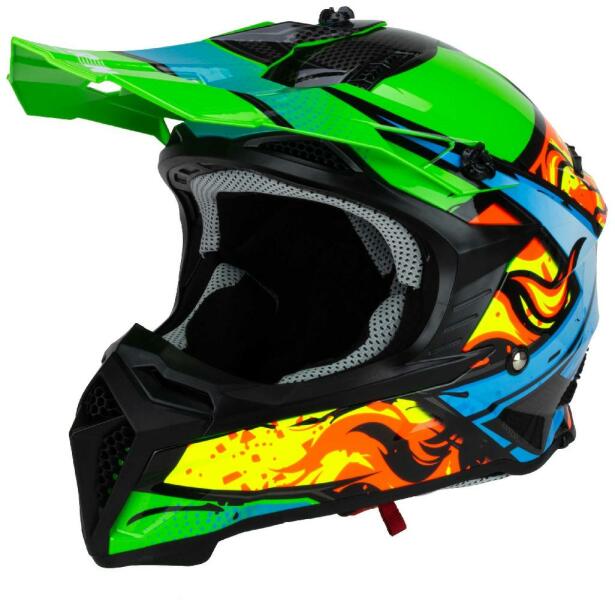 HORN H303 ENDURO CROSS BUKÓSISAK - ZÖLD-SÁRGA-KÉKA HORN H303 Enduro Cross Bukósisak - Zöld-Sárga-Kék egy merész és figyelemfelkeltő sisak, amely ideális választás a stílusos és biztonságos motorozás szerelmeseinek. A zöld, sárga és kék színösszeállításának köszönhetően ez a sisak valódi látványosság minden úton. Az ABS műanyagból készült külső burkolat és