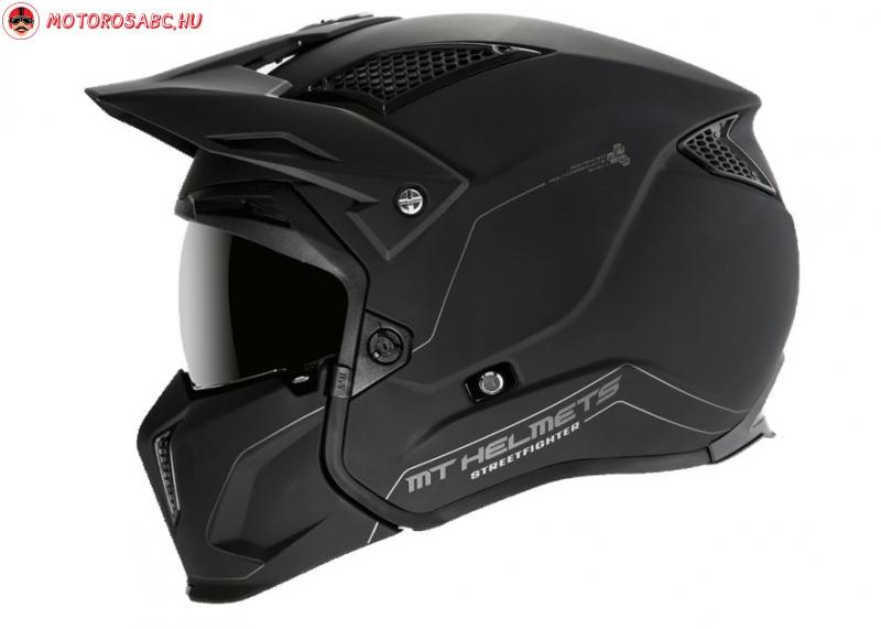 S:55-56 cmMT Trial SV (SunVisor) - triál bukósisak, beépített lehúzható belső napszemüveggel, aerodinamikus H*I*R*P rendszerű, (magas ütésállóságnak ellenálló polimer) anyagú öntött thermoplasztikus héjszerkezet, különböző sűrűségű ütéselnyelő EPS réteggel, két különböző méretű héjszerkezettel, XS-S-M 1.200gr+50gr és L-XL-XXL 1.300gr+50gr súllyal. Sport ka