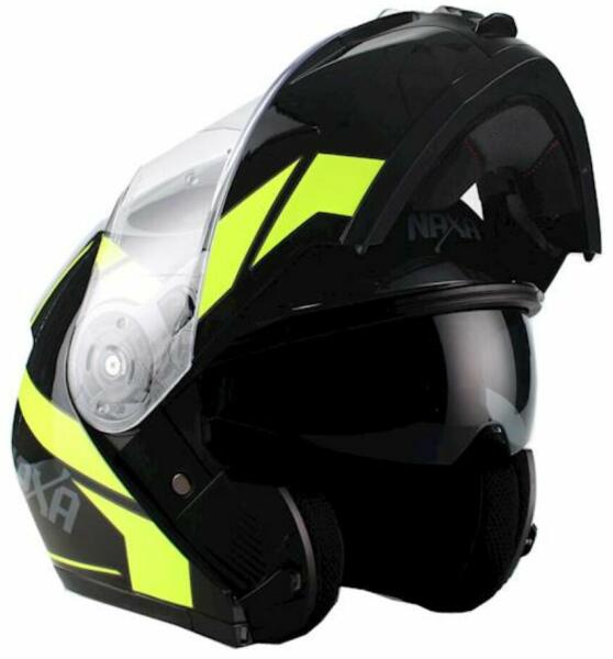 Naxa F04-D Felnyitható Bukósisak Napszemüveggel + Ajándék Pinlock lencseA Naxa F04-D Felnyitható Bukósisak egy kifinomult, technológiailag előrehaladott megoldás a motorosok számára, mely hozzájárul az utazás biztonságához és élvezetéhez. A dizájnja elegáns, míg a felnyitható kialakítása kényelmes, különösen a városi forgalomban, ahol gyakori a megállás. A sisak be