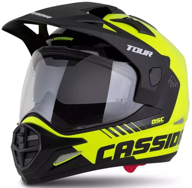 A Cassida Tour 2.0 Dual motoros sisak polikarbonát héjjal rendelkezik, amely készen áll a kommunikátoros fejhallgató felszerelésére, és lehetőséget kínál egy MX szemüvegpánt rögzítésére is a sisak hátuljára. Főbb jellemzők és tulajdonságok: Kialakítás - Enduro sisak. Anyag - polikarbonát héj. Beépített napellenző. Plexi, előkészítéssel a párásodásgátló fó