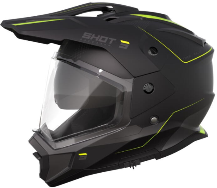 A motoros sisak ütésálló HIRP polimerből készült. Többrészes EPS differenciált sűrűségű bélés a jobb energiaelnyelés érdekében. Kivehető állrész. Kivehető napellenző átlátszó kivitelben (a képen látható füstös nappellenző csak illusztráció, nem tartozék). Szellőzés a sisak jobb légáteresztő képességéért. Állítható sild. Sisakrögzítés mikrometrikus