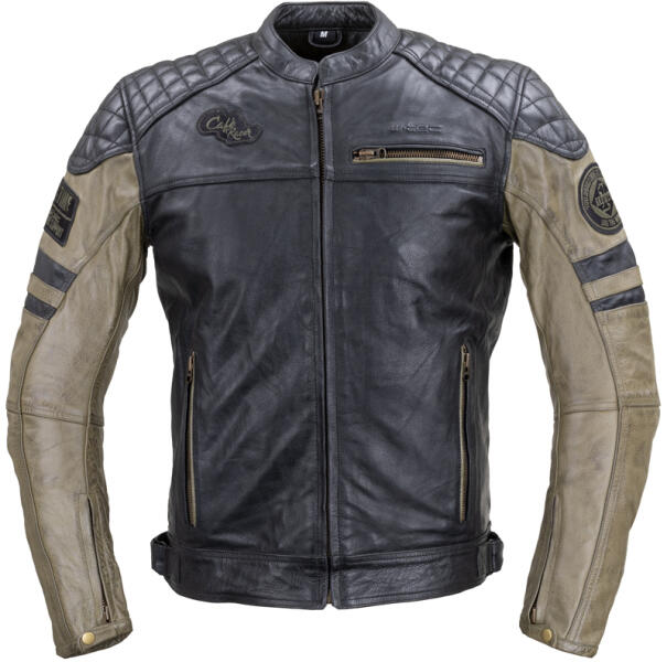 Bivalybőrből készült. 100%-ig vízálló és lélegző. OMEGA CE vállprotektorok. OMEGA CE állítható magasságú könyökprotektorok. Gerincprotektor zseb. Kicipzározható 90g-os alu-szálas thermobélés. Hálós, nyári bélés. Derékban és csuklónál állítható. Négy külső és két belső zsebbel. Méret: S-4XL.