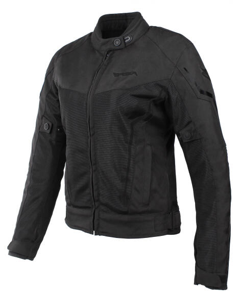A kabát 100% poliészterből készült. Mesh bélés poliészterből. Kivehető poliészter membrán. A kabát CE level 1. könyök- és vállprotektorokkal van ellátva. Előkészítés a protektorokhoz (a protektorok nem tartozék). Stretch harmonika panelek a könyöknél és a lapockáknál a nagyobb mobilitás érdekében. Kényelmes neoprén gallér. Tépőzáras húzózsinórok a szegélye