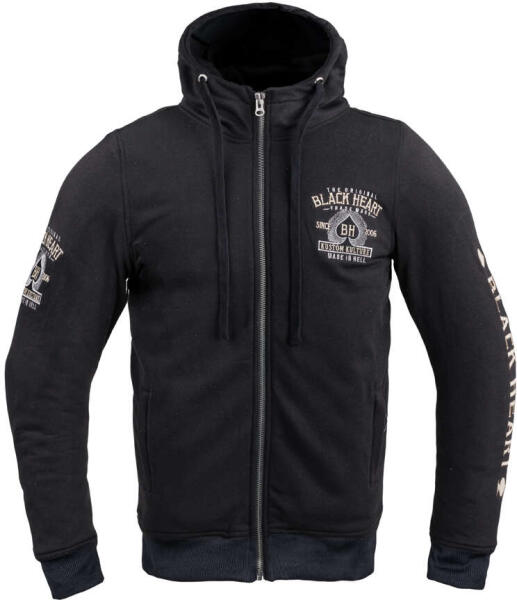 A W-TEC Black Heart Kustom Kulture Hoodie férfi kapucnis felső vagány és kényelmes motoros kiegészítő pamutból és poliészterből. A légáteresztő hálós bélés kiváló légáramlást biztosít, így a kabát nemcsak a meleg nyári napokra, hanem a tavaszi és az őszi szezonra is tökéletes. A tanúsított könyök- és vállvédők segítenek a biztonságos motorozásban. Tanús