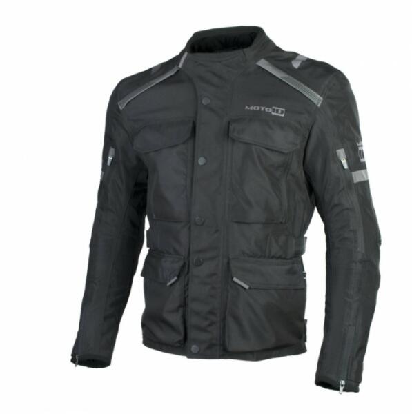 A kabát 100% poliészter 600D-ből készül. Poliészter hálós béléssel bélelve, amely elvezeti a nedvességet és tökéletesen lélegző. A levehető és vízálló membrán garantálja a vízálló kabátot. A kabát egy része CE-védők a vállakon és a könyökön - 1. szint. Zseb, amely lehetővé teszi a hátsó védő behelyezését (a védő nem szerepel a kabátban). A stretch pa