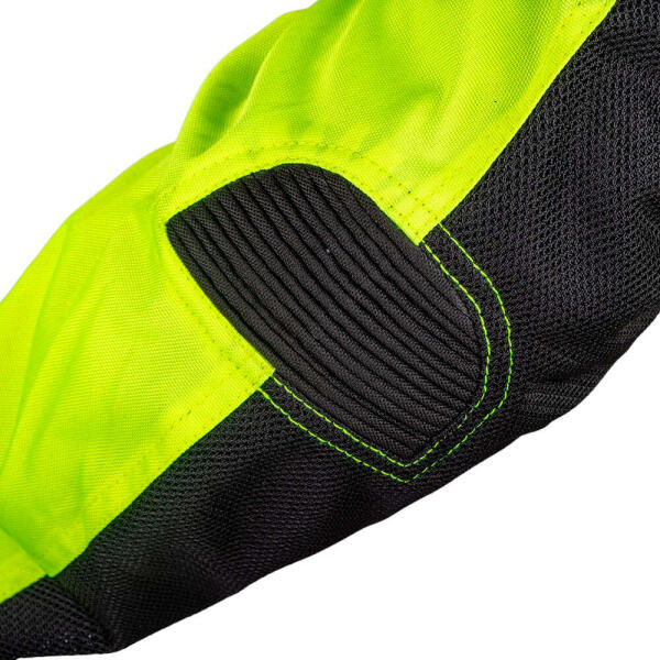 A kabát 600D poliészterből készült, amely nagyon kopásálló. A kabát nagy része poliészter hálóból készült, ami tökéletesen lélegzővé teszi a kabátot. A kabát SEESMART CE-level 1 váll- és könyökprotektorokkal rendelkezik. Zseb a SEESOFT CE hátprotektor használatára – Level 2. (protektor nem tartozék). A kiterjedt szellőzőpanelek optimális légáramlást biztosít