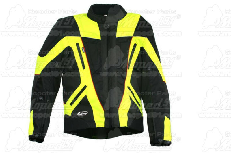 A kabát tartós HD-poly 600D poliészterből és Ripstop anyagból készült. A kiterjedt hálós panelek biztosítják az optimális légáteresztést. Erősseb tartás a rejtett varratoknak köszönhetően. Megerősített Bar-Tack varrás. CE minőségi tanúsítvánnyal rendelkező váll- és könyökprotektorok tartoznak hozzá. Zseb a hátprotektor behelyezéséhez (hátprotektor nem tartoz