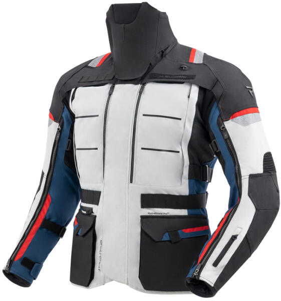 Motoros kabát fejlett anyagokból készült Polyester 450D, Polyester 1000D és 3D Matrix Mesh. Kivehető In & Out HydraShield membránnal rendelkezik, amely magas esőállóságot (7000 mmH20 vízállóság) garantál, miközben magas légáteresztő képességet biztosít (10000 g/m2/24h). A membrán kabát fölött is viselhető. Hiker IV motoros kabát állítható CE-Level 2 minősítés