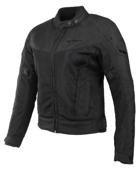Fibretech 600D külsőrész, hálós nyári betétekkel. Állítható magasságú ALPHA CE könyökprotektorok. ALPHA CE vállprotektorok. Gerincprotektor zseb. Hálós bélés. Két külső és egy belső zseb. Derékban és csuklónál szűkíthető. Reflektív betét a kabát hátán.