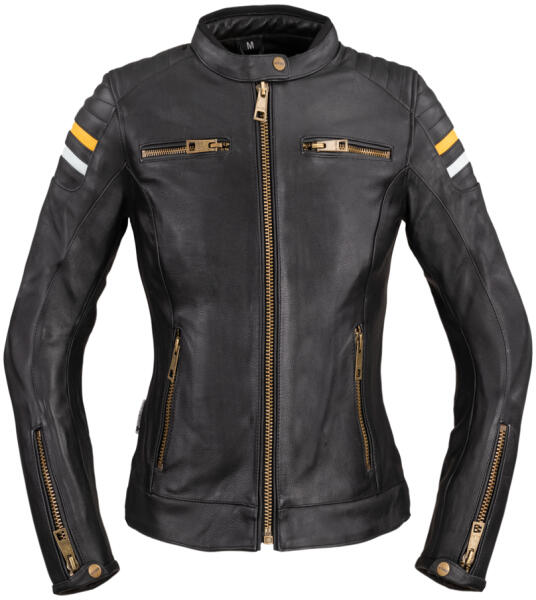 A W-TEC Stripe Lady Női motoros bőrkabát a stílusos dizájn és a kényelem kombinációja. Ezenkívül CE gumi váll- és könyökvédőkkel rendelkezik, amelyek biztonságban tartanak utazás során. További zsebek is találhatók rajta, például a kiegészítő hátvédőnek. Azonban az összes védő eltávolítható, így a W-TEC Stripe Lady Női motoros bőrkabát tökéletes mindennap