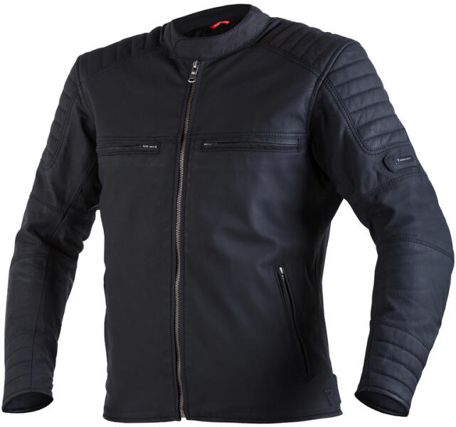 Minőségi marhabőrből készült kabát. A váll területén és a könyök felett lévő rugalmas panelek maximális kényelmet biztosítanak. A kabát EN 1621-1:2014 CE váll- és könyökpárnákkal és EN 1621-2:2014 CE hátvédővel van felszerelve. Csúszkák a vállakon, nagy szilárdságú és kiváló minőségű anyagból. A karokon és a kabát hátulján puha habból készült párn