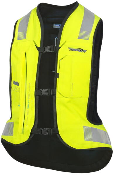Az Airbag Vest Helite e-Turtle Black 3 az 1-ben fekete légzsák mellény forradalmi védelmet nyújt. A fő előnye a felfújható légzsákrendszer jelenléte, amely képes elnyelni a test felső részét ért ütést, és biztosítja az energia hatékony eloszlását. Ennek következtében a fej esetleges ütése is kisebb sebességgel és késéssel történik, amelynek eredményeként a fejed