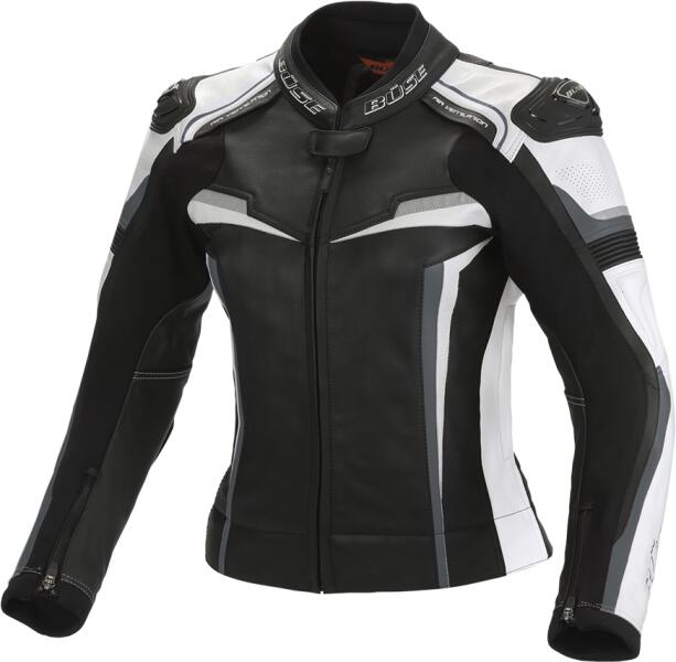 1,2-1,4mm vastag marhabőr Külső fémbetétes protektorok a vállon és könyökön Szellőzők elöl a vállnál és kétoldalt Perforáció a váll elülső részén Neoprénes gallér YKK cipzárok Bőr stretchpanelek a könyök fölött, hátul a vállaknál és a derékon Textilbetétek az ujjakon és oldalt Neoprénnel végződő ujj Összekötő cipzár Jól szellőz