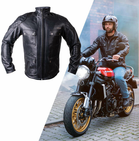 A W-TEC Patriot férfi motoros kabát kialakítása elsőre meglepetést okozhat. Annak ellenére, hogy poliészter dzseki, teljesen úgy néz ki mint egy bőrdzseki. És a bőrkabátokhoz képest számos előnyt kínál: könnyebb, mosható, karbantartást nem igényel (gyantázás nem szükséges), és nem utolsósorban sokkal olcsóbb. A W-TEC Patriot férfi motoros kabát ötvözi a stílust a