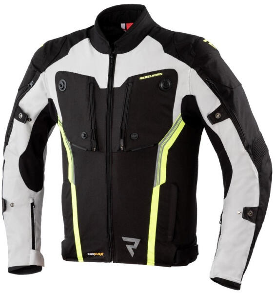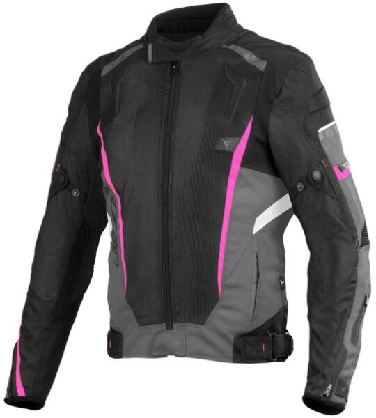 A kabát Cordura® Nylon 500D, Cordura® Nylon 1000D, 4way poliészter stretch, poliészter 500D anyagok kombinációjából tevődik össze. Anyagösszetétel: 60% poliészter, 40% poliamid. Poliészter mesh - tökéletesen szellőző béléssel. Kivehető, vízálló HUMAX® membránnal. CE váll-és könyökprotektorokkal – level2 (a könyökprotektorok magassága állítható). A fokozottabb