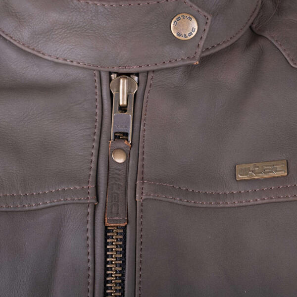 Marhabőrből készült. Shield Tex betétekkel. Állítható magasságú OMEGA CE könyökprotektor. Külső vállerősítés. OMEGA CE vállprotektorok. Gerincprotektor zseb. Kicipzározható Shelltech Classic thermobélés. Hálós, nyári bélés. Nadrággal összecipzározható. Több külső és belső zseb.