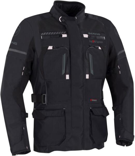 Fibretech 600D és softshell külsőrész. 100%-ig vízálló és lélegző. Kicipzározható Shelltech thermobélés. Állítható magasságú OMEGA CE könyökprotektor. OMEGA CE vállprotektor. Pulse Air: Cipzárral állítható szellőzők. Hálós, nyári bélés. Gerincprotektor zseb. Nadrággal összecipzározható. Fényvisszaverő csíkok. Több külső és belső zseb.