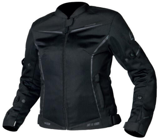 A kabát 100%-ban 500D poliészterből készült. Poliészter mesh béléssel kiegészítve, amely elvezeti a nedvességet és kiválóan szellőzik. A kivehető, vízálló membránnak köszönhetően a kabát garantáltan nem ázik át. A kabát tartozékai a CE-level 1-es váll- és könyökvédők, amelyek nagyfokú biztonságot nyújtanak. A könyökvédők magassága állítható. Zseb a há