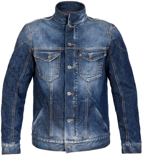A dzeki T-Tex PRO® anyagból készült, amely egy rétegben egyesíti a Denim és a Twaron® anyagokat. Az állóképességet 4,4 másodpercnél jelzik. Karcsúsított. Minősített váll- és könyökprotektorok EXA PRO CE 1621-1. Előkészíttés a CE EN17092-2 hátprotektor használatára (a protektor nem taztozék). Az EN 13595-1 szabvány szerint tesztelve. Mellzsebek gombos füllel, oldalzs