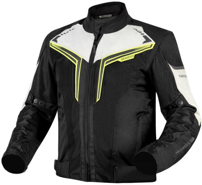A kabát 100%-ban poliészter 600D-ből készült. Légáteresztő, hálós béléssel kiegészítve. Kivehető, szellőző, vízálló Reissa membránnal. Steel mesh panelekkel kiegészített a fokozottabb légcsere érdekében. A kabát tartozékai a CE level 1 váll-és a könyökprotektorok. Zseb a hátprotektor behelyezésére (a protektor nem a kabát tartozéka). A dupla és a tripla varra
