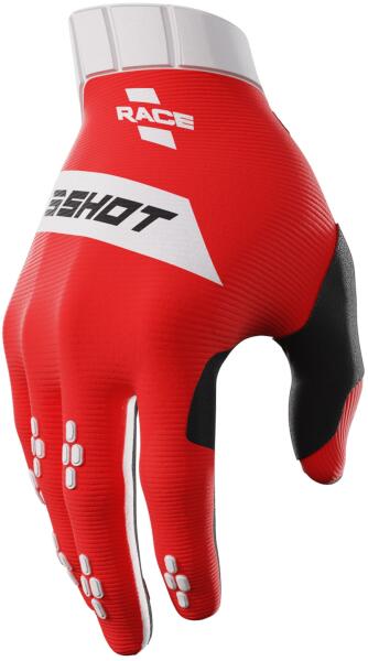 Gyermek motokrossz kesztyű, fiatal versenyzőknek tervezve. Shot Race motokrossz kesztyű gyerekeknek. Főbb jellemzők és tulajdonságok: Rugalmas szövetből készült. Könnyű és tartós Grotech tenyér perforációval. Lycra részek az ujjak között Tépőzáras záródás a csuklónál Kényelmes neoprén csukló Megerősített hüvelyk- és mutatóujj Szilikon részek az ujjakon TPR vé