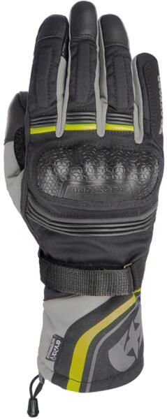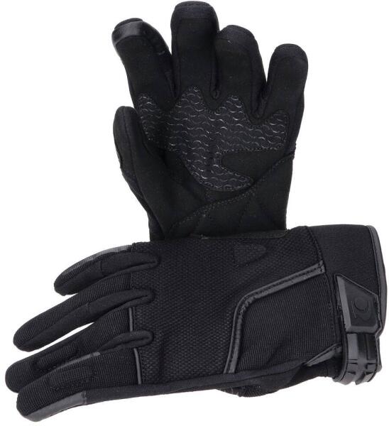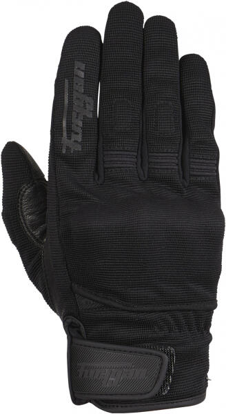 Rövid textil kesztyű, bőr panelekkel a tenyér részen. Poliuretán ujjbegyprotektor. A metacarpal D30 protektor megerősített szövetből és habszivacs bélésből készült a jobb ütéselnyelés érdekében. Megerősített tenyérrész a nagyobb kopásállóság érdekében. A kesztyű tépőzáras, - és összehúzó pánttal rögzíthető a csuklón. A kesztyű lehetővé teszi az érint
