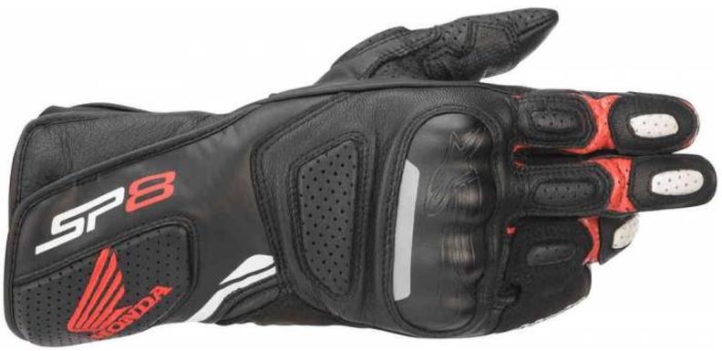 Alpinestars - SP-8 Honda motoros kesztyű (Fekete - fehér - piros)Az Alpinestars SP-8 Honda motoros kesztyű az elasztikus marhabőr anyagának köszönhetően garantálja a maximális tartósságot és komfortot. A kesztyű kiválóan rugalmas, a természetes illeszkedés pedig a kezei számára megfelelő mozgástér biztosítását teszi lehetővé, miközben kiemeli a kesztyű tartósságát