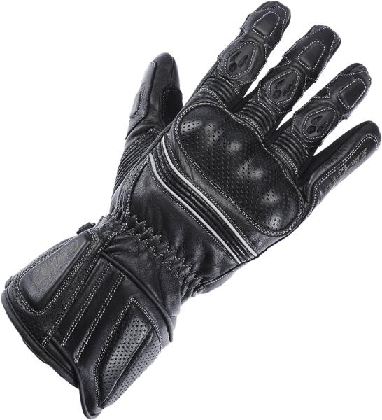 Elegáns rövidkesztyű a legmelegebb időkre Kitűnő minőségű perforált marhabőr Ergonomikus szabás Hálós betétek az ujjakon és a csuklón Stretchpanelek az ujjakon Tépőzár a csuklón Okostelefon-kompatibilis mutató- és hüvelykujj Biztonság: "Rejtett" kemény bütyökvédő Dupla réteg bőr a tenyéren