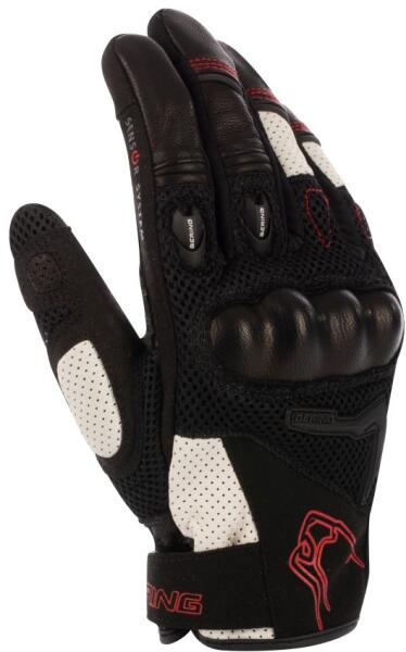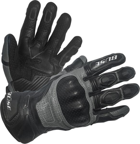 Elegáns rövidkesztyű a legmelegebb időkre Kitűnő minőségű perforált marhabőr Ergonomikus szabás Hálós betétek az ujjakon és a csuklón Stretchpanelek az ujjakon Tépőzár a csuklón Okostelefon-kompatibilis mutató- és hüvelykujj Biztonság: "Rejtett" kemény bütyökvédő Dupla réteg bőr a tenyéren