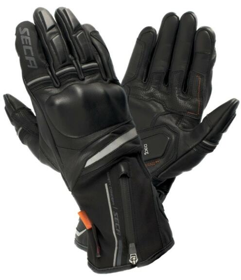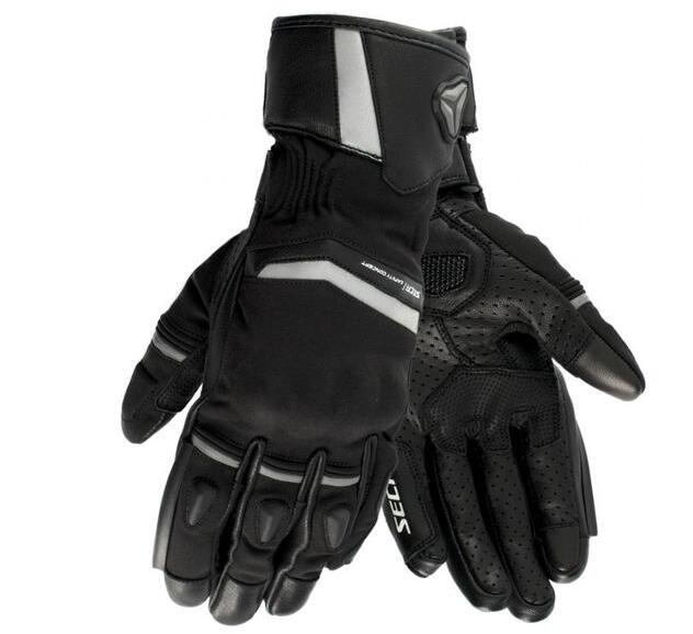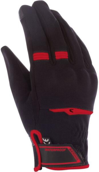Külső anyaga Fibretech 600D és kecskebőr. Vízálló membránnal ellátott motoros kesztyű. Pamut thermo bélés. Protektorral. Megerősített bőr tenyérrész, csúszásgátló bevonattal. Érintőképernyő kompatibilis. Közepes hosszúságú. EN 13594: 2015. Méret: T8-T13.